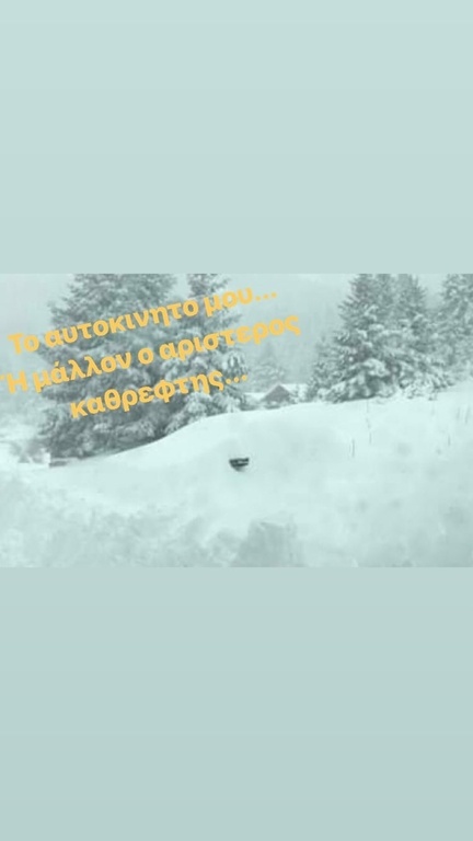 Το χιόνι σκέπασε το αυτοκίνητό του και σχεδόν τον πρώτο όροφο του ξενοδοχείου όπου έμενε και αποκλείστηκε στο βουνό! Αποκλεισμένος στον Παρνασσό ευχήθηκε «Καλή χρονιά»!