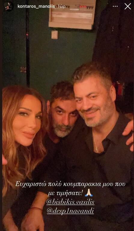 Μετά το τέλος του J2US, η Δέσποινα Βανδή και ο Βασίλης Μπισμπίκης βρέθηκαν να διασκεδάζουν στο νυχτερινό κέντρο όπου τραγουδάει ένα πολύ αγαπημένο τους πρόσωπο, ο Μανώλης Κονταρός.
