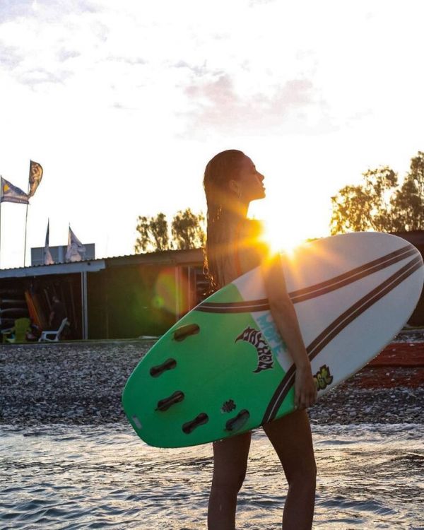 Πρόσφατα, το μοντέλο, μοιράστηκε μαζί μας μια σειρά από φωτογραφίες, στις οποίες την είδαμε να ποζάρει με μαγιό και να κρατά τη σανίδα του σέρφινγκ.