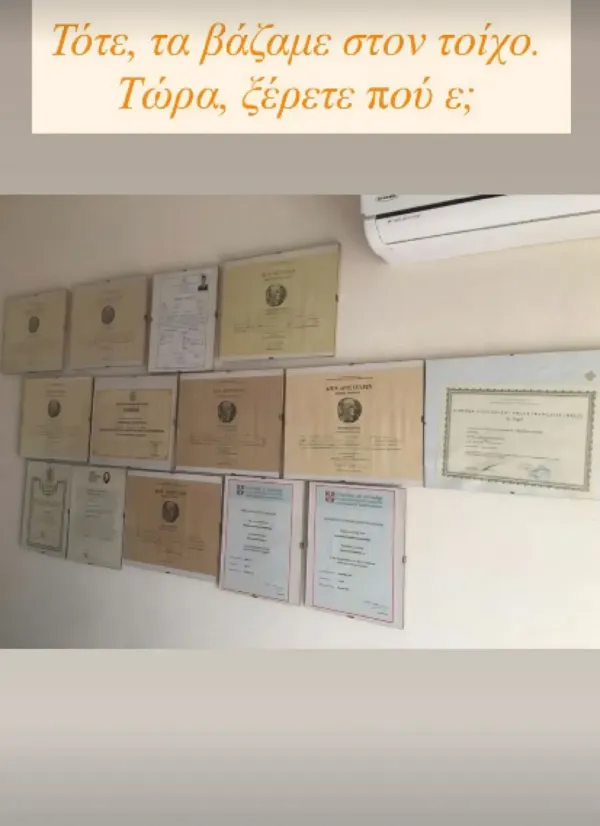 Σε πιο χιουμοριστικό τόνο, σχολιάζοντας τις φωτογραφίες του, δεν παρέλειψε να αυτοσαρκαστεί λέγοντας για τα πτυχία του: «Τότε τα βάζαμε στον τοίχο. Τώρα ξέρετε πού, ε;», ενώ με αφορμή τη θητεία του ανέφερε: «Ωραία ήταν που σας κρατούσα ασφαλείς;».