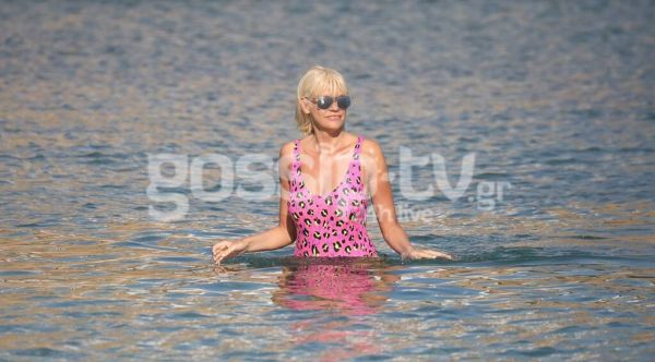 Η δημοσιογράφος ταξιδεύει συχνά φέτος το καλοκαίρι στη Μύκονο για διήμερα ή τριήμερα απόδρασης και έτσι ήταν θέμα χρόνου να την απαθανατίσει ο φωτογραφικός φακός -εκτός από τα σοκάκια της χώρας- και στην παραλία με μαγιό.