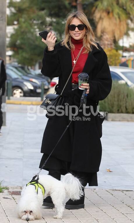 Ο φωτογραφικός φακός την απαθανάτισε σε ξέγνοιαστες στιγμές της στο κέντρο της Γλυφάδας να απολαμβάνει τον περίπατό της με το σκυλάκι της που του έχει μεγάλη αδυναμία.