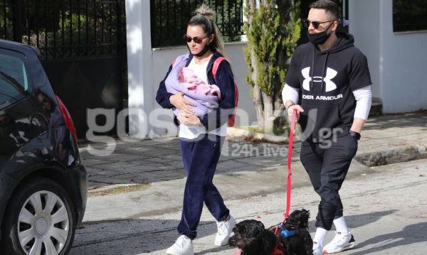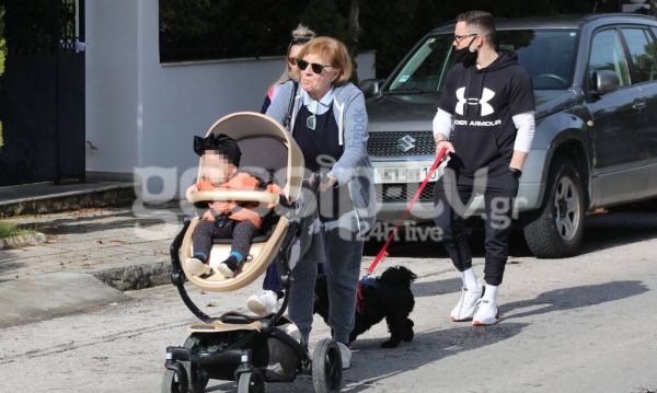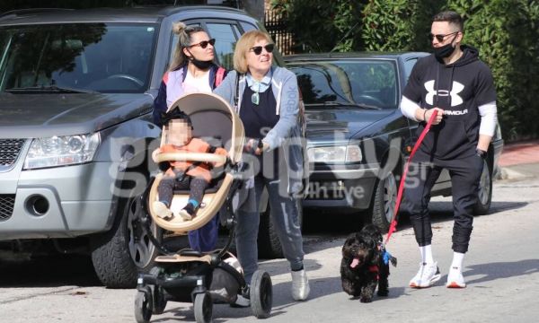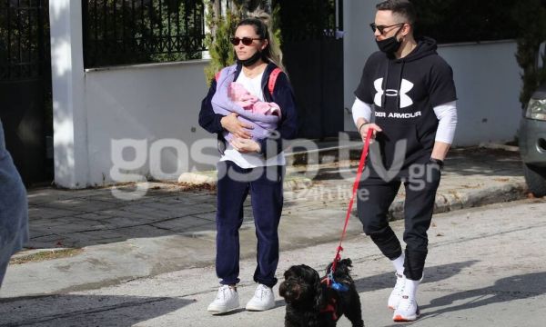 Η οικογένεια έκανε βόλτα στη χειμωνιάτικη λιακάδα, θέλοντας να ξεσκάσει για λίγο από τους τέσσερις τοίχους του κατά τα άλλα άνετου και υπέροχα διακοσμημένου αλλά και λειτουργικού σπιτιού της στη Γλυφάδα.