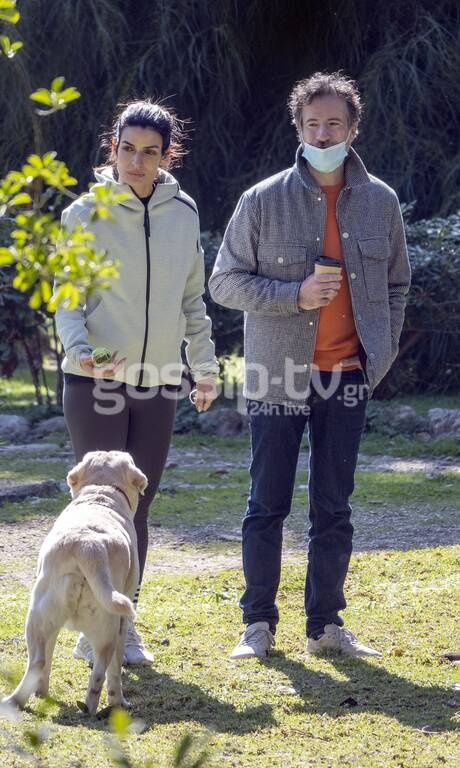 Εκείνη, ντυμένη αθλητικά και σε πολύ καλή φόρμα και εκείνος με casual ντύσιμο και κρατώντας στο χέρι έναν καφέ, έδειξαν να απολαμβάνουν τον πρωινό περίπατό τους. Μάλιστα καθώς περπατούσαν συνάντησαν έναν γνωστό τους με τον χαριτωμένο σκύλο του και συνομίλησαν για λίγο μαζί του.