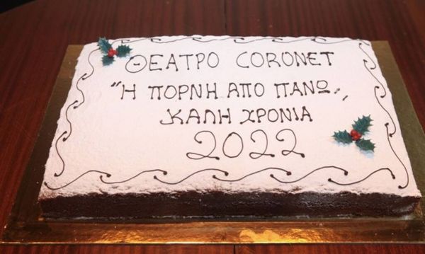 Κοπή της πίτας στο θέατρο Coronet για την παράσταση Η Πόρνη από πάνω.
