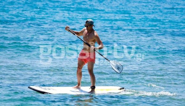 Παρά τις υποχρεώσεις του με τα επαγγελματικά αλλά και την ανατροφή του παιδιού ο Σάββας Πούμπουρας βρήκε χρόνο να κάνει όρθια σανιδοκωπηλασία (SUP)