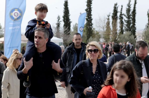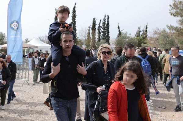 Η Σία Κοσιώνη και ο Κώστας Μπακογιάννης παρέα με το γιο τους, Δήμο, το πρωί της Καθαράς Δευτέρας ανέβηκαν μέχρι τον λόφο Φιλοπάππου με σκοπό να πετάξουν τον χαρταετό τους και να περάσουν όμορφες οικογενειακές στιγμές.