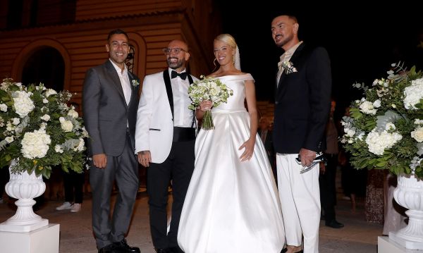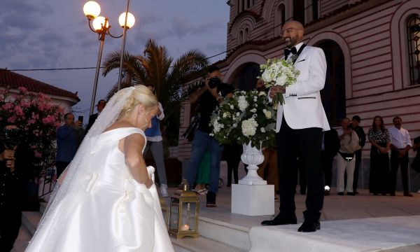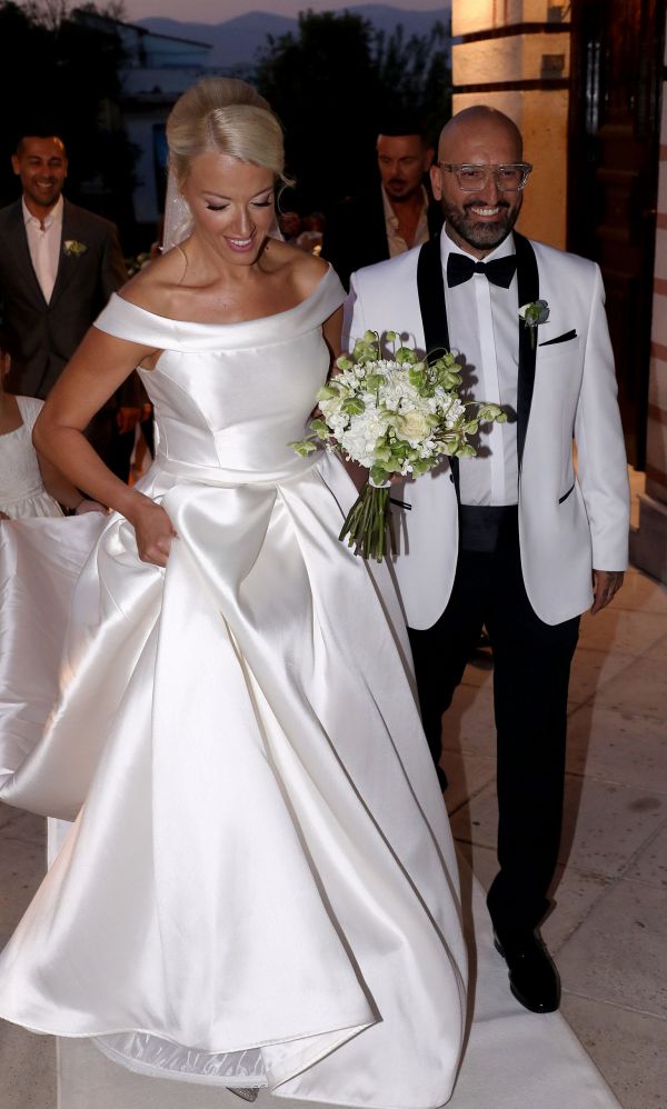 Η νύφη έλαμπε μέσα στο σατέν νυφικό της ενώ και ο γαμπρός δεν έκρυβε την ευτυχία του για το happy end στην προσωπική του ζωή.