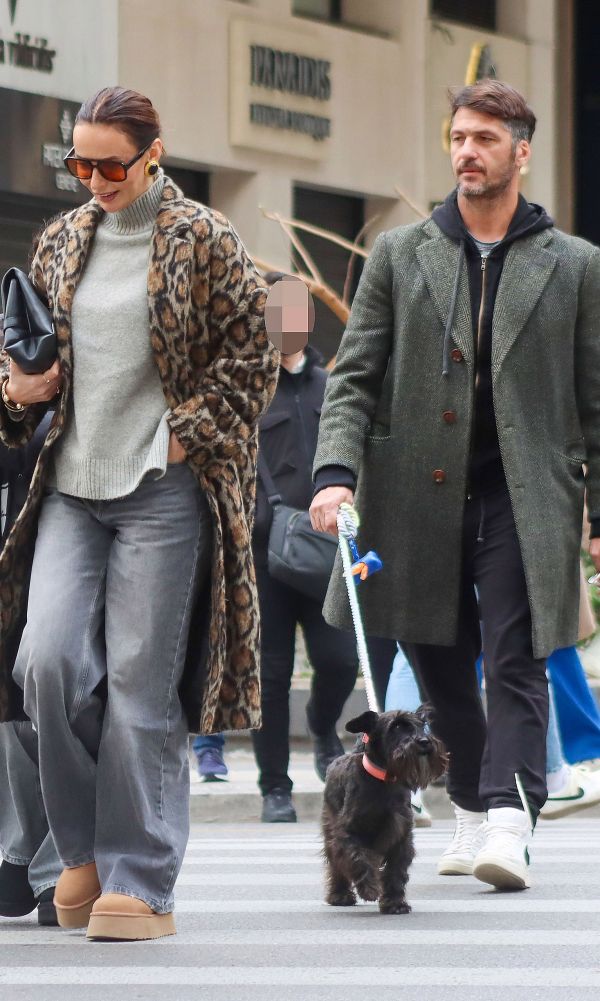 Η παρουσιάστρια συνδύασε το τζιν της με oversize πουλόβερ και animal print πανωφόρι ενώ κρατούσε μαύρο τσαντάκι στο χέρι. Η μικρούλα, με ίδιες μπότες σε άλλη απόχρωση και puffer μπουφάν.