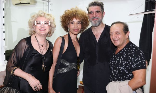 Πρωταγωνιστές της παράστασης στα παρασκήνια με ανθρώπους της τέχνης.