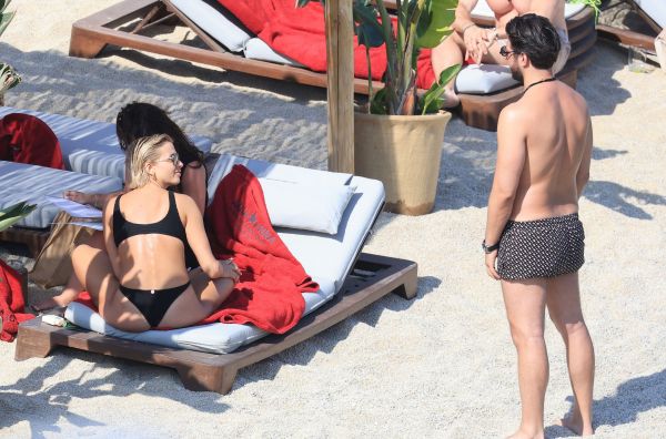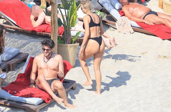 Ο φωτογραφικός φακός τους απαθανάτισε σε γνωστή παραλία του νησιού, όπου απόλαυσαν τον ήλιο και τις βουτιές τους στη θάλασσα. Η Κατερίνα Λιόλιου φορούσε ένα μαύρο μπικίνι ενώ δεν έλειψαν και τα φιλιά στον σύντροφό της.