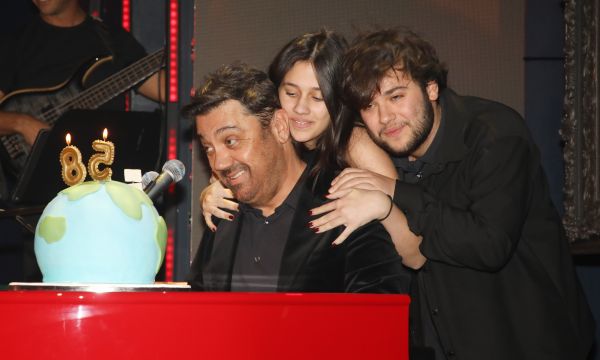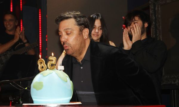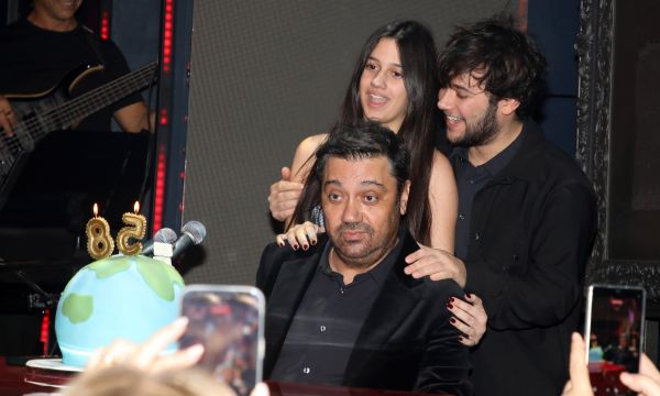 Στο πλευρό του, φυσικά, βρέθηκαν, εκτός από τη σύζυγό του Βίλλυ, και δύο από τα παιδιά του, τα οποία έσπευσαν να τον αγκαλιάσουν και να τον φιλήσουν τη στιγμή που ο αγαπημένος μουσικοσυνθέτης έσβηνε τα κεράκια της τούρτας του. Η ατμόσφαιρα ήταν ζεστή, με καλεσμένους πολλούς και λαμπερούς, ενώ τα καλλιτεχνικά πηγαδάκια έδιναν και έπαιρναν.
