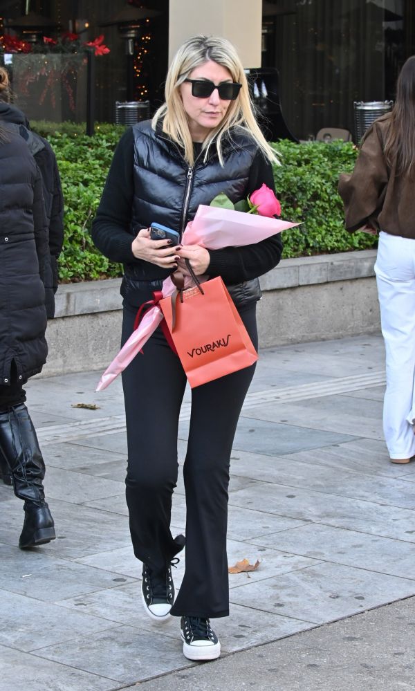 Η Σία Κοσιώνη απαθανατίστηκε από τον φωτογραφικό φακό επίσης σε χαλαρή βόλτα για ψώνια, ντυμένη απλά και καθημερινά, αποδεικνύοντας πως ακόμη και τα πιο αναγνωρίσιμα πρόσωπα της επικαιρότητας κινούνται στην πόλη με φυσικότητα, μακριά από τα τηλεοπτικά πλατό.