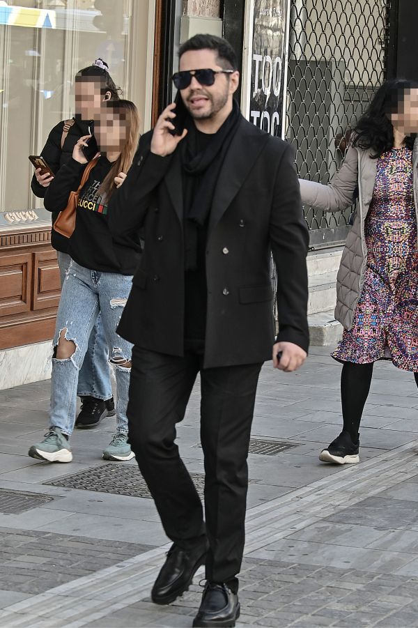 Παράλληλα, ο Γιώργος Τσαλίκης εθεάθη επίσης στο κέντρο της πόλης, σε πιο βιαστικούς ρυθμούς, ντυμένος με total black outfit και μιλώντας στο κινητό του τηλέφωνο. Πάντα γοητευτικός, διατηρεί το χαρακτηριστικό του στυλ ακόμα και στις πιο απλές στιγμές της καθημερινότητας.
