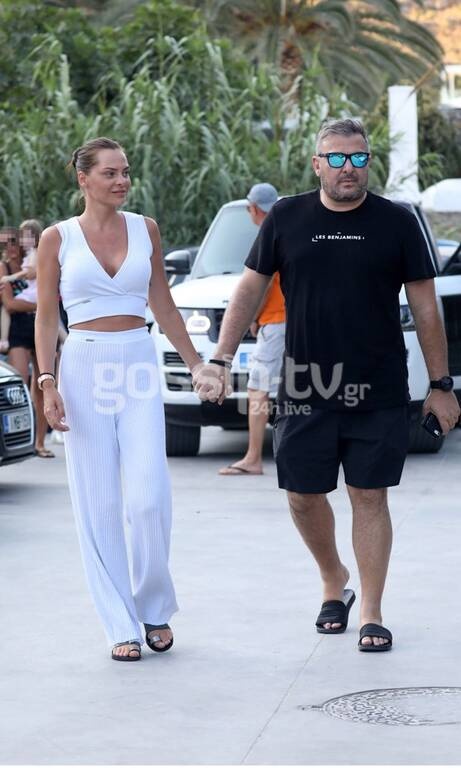 Το ζευγάρι βρέθηκε πριν από μερικές ημέρες στην Μύκονο ντυμένο στα ασπρόμαυρα. Η Υβόννη φορώντας μια λευκή αέρινη παντελόνα και ένα λευκό μπουστάκι έκλεψε τις εντυπώσεις με το υπέροχο κορμί της.