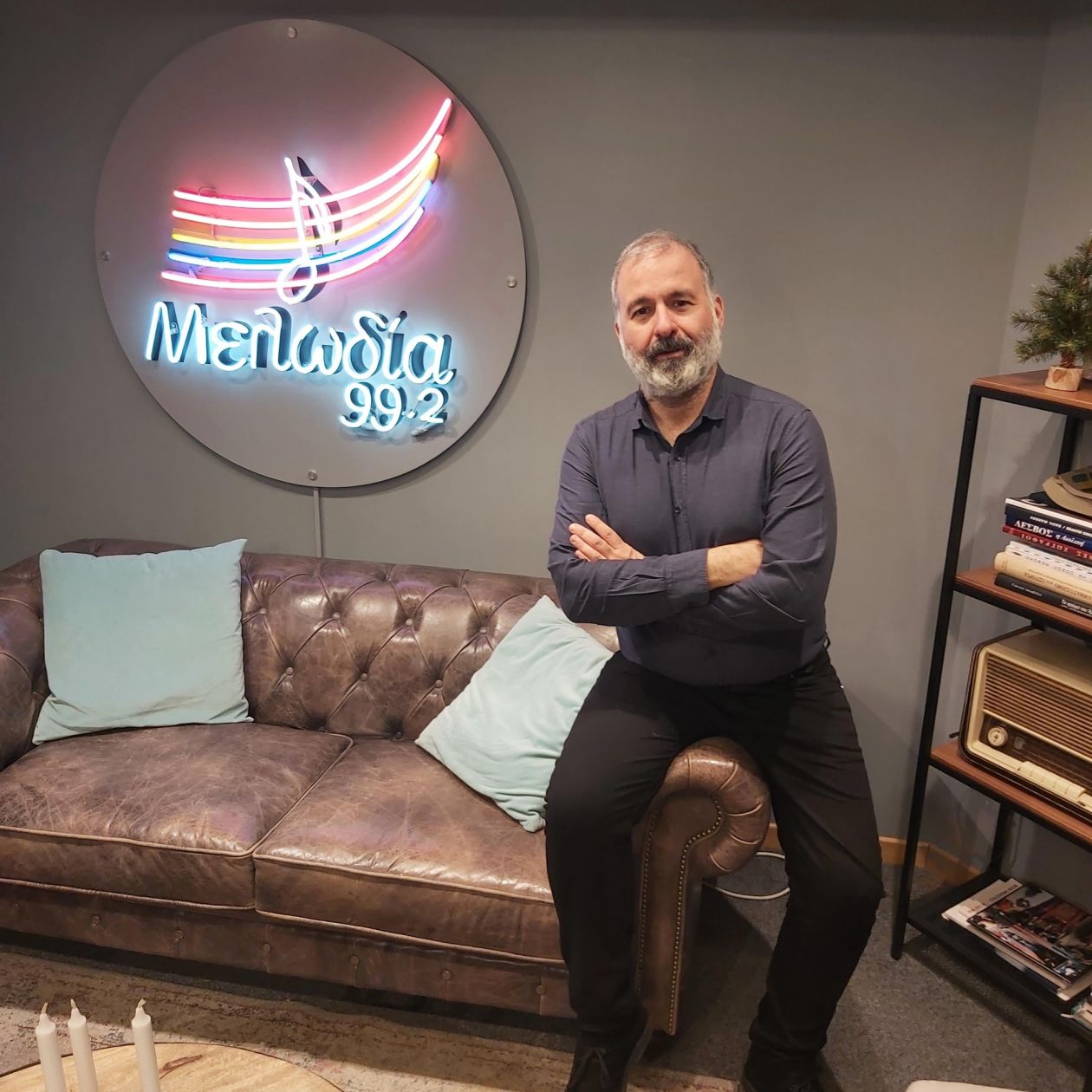 Πριν κατέβουμε στο στούντιο όμως είχα την τιμή και τη χαρά να ζήσω όλο το backstage αυτή της «κασέτας» με τον διευθυντή του σταθμού, Δημήτρη Βραχνό. Ο τόνος της φωνής του, αυτό το ηχόχρωμα εξέπεμπε μια αδιανόητη ηρεμία που μπορεί κανείς να τον ακούει για ώρες. Αυτό άλλωστε είναι και το μυστικό του αφού για χρόνια έχει στο πλευρό του φανατικούς και αμετακίνητους ακροατές.