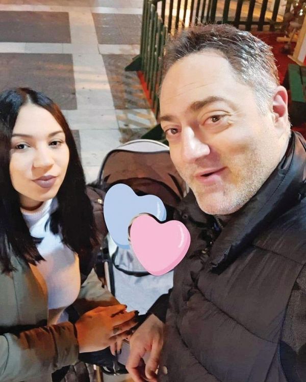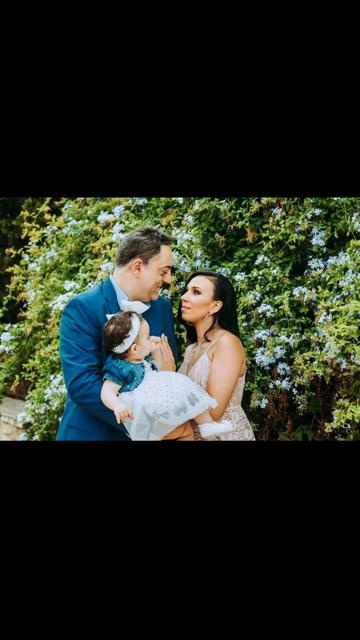 Με τη σύζυγό του και την κόρη τους, την ημέρα της βάφτισης της μικρής.