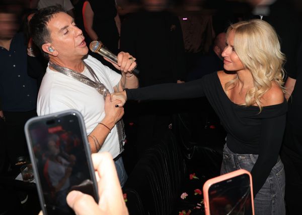 Η παρουσιάστρια πόζαρε με ενθουσιασμό δίπλα στον τραγουδιστή, ενώ οι δυο τους τραγούδησαν μαζί. Η εμφάνισή της για μια ακόμη φορά έκλεψε τις εντυπώσεις.