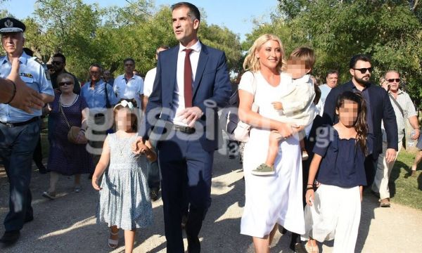 Εκεί, ο νέος Δήμαρχος Αθηναίων εμφανίστηκε με τη σύζυγό του Σία Κοσιώνη και τα τέσσερα παιδιά του, με την όμορφη δημοσιογράφο να κρατά στην αγκαλιά της τον μικρότερο της οικογένειας, τον γιο της Δημοσθένη.