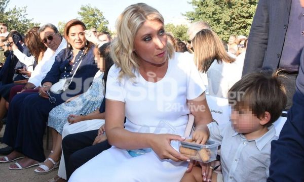 Μάλιστα, είχε φέρει μαζί της, εκτός από το μπιμπερό με νερό που του έδινε συνεχώς και μπισκότα για να τον ταΐσει. Μπορεί ο πρωταγωνιστής της εκδήλωσης να ήταν ο νέος Δήμαρχος, όμως τα φωτογραφικά κλικ κατέγραφαν κάθε κίνηση της ευτυχισμένης μαμάς με τον μικρό γιο της που ήταν αχώριστοι.