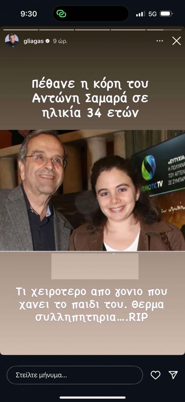 Αντώνης Σαμαράς: Τα μηνύματα θρήνου των επωνύμων για την κόρη του που έφυγε από τη ζωή στα 34 της
