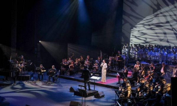Μαζί της μια εντυπωσιακή Συμφωνική Ορχήστρα του Ωδείου Συγγελάκη με μαέστρο τον Πάνο Βλάχο ενώθηκε με την ηλεκτρική της ορχήστρα, την παιδική χορωδία του Σπύρου Λάμπρου και τα λαϊκά μονοπάτια υπό τους ήχους των είκοσι μπουζουκιών, συνθέτοντας μια εντυπωσιακή εικόνα και ένα ξεχωριστό άκουσμα.