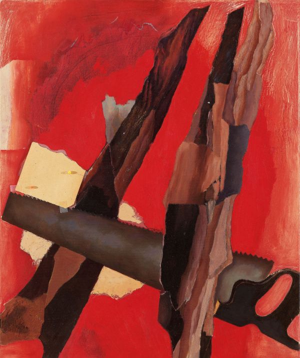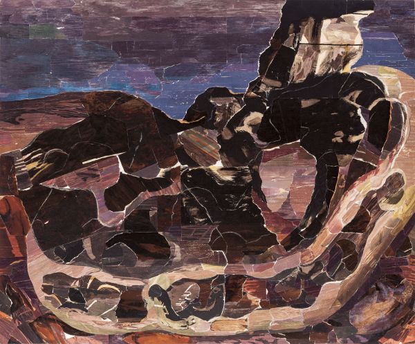 Άγνωστος τίτλος, 1986 • κολάζ ξυλογραφίας σε χαρτόνι κολλημένο σε ξύλο, 100x160 εκ. • συλλογή του καλλιτέχνη