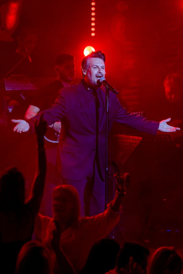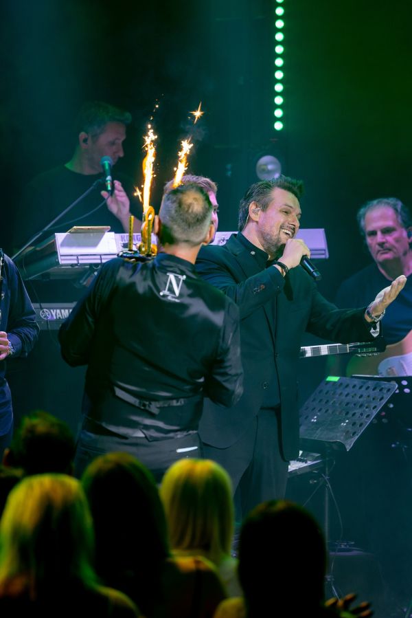 Κατά τη διάρκεια του προγράμματος, οι συνεργάτες του, του τραγούδησαν το γενέθλιο τραγούδι, ενώ ερμήνευε τις διαχρονικές του επιτυχίες και συγκινημένος από την όμορφη έκπληξη, έσβησε τη διώροφη τούρτα παρέα με το κοινό του, που ολοκλήρωσε, χειροκροτώντας, την εορταστική ατμόσφαιρα.