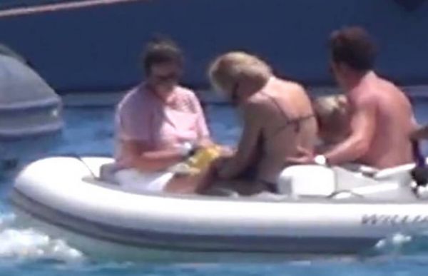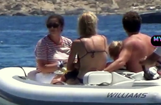 Η κάμερα του Mykonos Live TV απαθανάτισε την οικογένεια την ώρα όπου απολάμβανε βόλτα στη θάλασσα με φουσκωτό.
