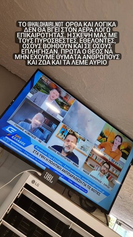 Συγκεκριμένα ανέφερε η Ελένη Τσολάκη: «Η ενημέρωση αυτή τη δύσκολη μέρα, προέχει! Το καλοκαίρι #not δεν θα βγει σήμερα! Οι ευχές μας είναι με όλο τον κόσμο που δοκιμάζεται και με τους ανθρώπους που δίνουν τον δικό τους αγώνα για να σώσουν ότι μπορεί να σωθεί! Ας κάνουμε όλοι μια ευχή και μια προσευχή! Τα λέμε αύριο στις 09:50».