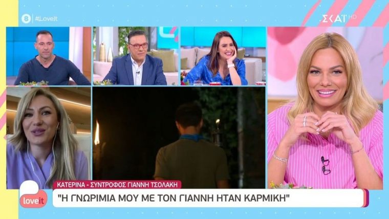 O Γιάννης Τσολάκης αποχώρησε από το survivor και η σύντροφός του, Κατερίνα μίλησε στην κάμερα της εκπομπής, love it για τη γνωριμία τους, τη σχέση τους αλλά αναφέρθηκε και στη σχέση που είχε αναπτύξει στο παιχνίδι ο αγαπημένος της με την Σοφιάννα Αβραμάκη .