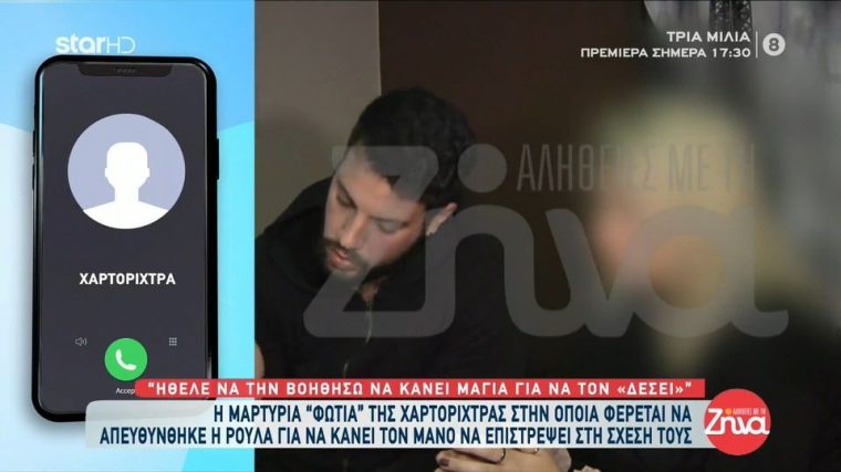 «Στις δικές μας συνεδρίες υπήρχε ο θυμός και η επιμονή της να κάνει κακό σε αυτόν τον άνθρωπο (Μάνο), που δεν μπορείτε να φανταστείτε. Ήταν χειριστική και επέμενε ότι εκείνος έχει εξωσυζυγική σχέση και ήθελε να του κάνει κακό. Επειδή κατάλαβα ότι κάτι δεν πάει καλά προσπαθούσα να την πείσω ότι δεν έχει σχέση ο Μάνος», ανέφερε αρχικά στην εκπομπή Αλήθειες με τη Ζήνα στο Star η χαρτορίχτρα.