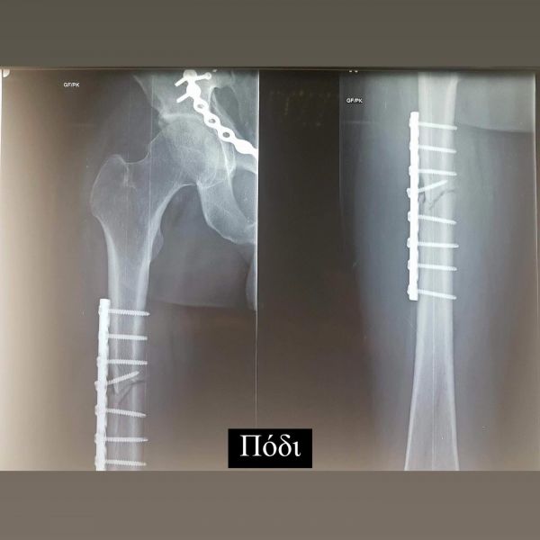 Οι ακτινογραφίες που του έκαναν και δείχνουν τα σίδερα που έχει σε χέρι, πόδι και λεκάνη