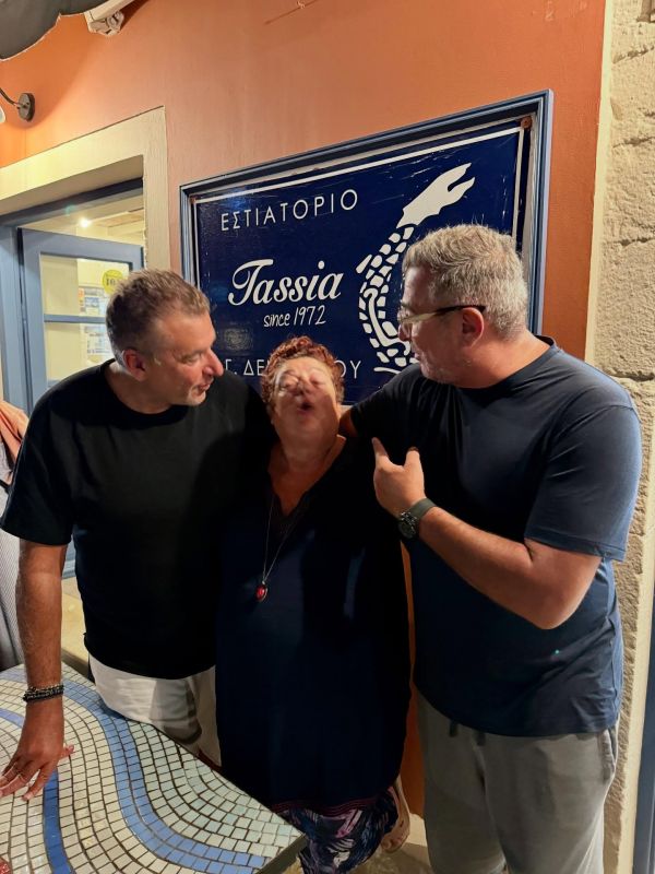 Και πρόσθεσε η Μαρία: «Είναι απίστευτο, μοιάζουν σαν δυο σταγόνες νερό. Είναι πολύ ταιριαστοί και έχουν και ίδια γούστα στα φαγητά. Είναι πάρα πολύ καλοφαγάδες. Είναι φίλοι πάρα πολλά χρόνια, πολύ καλοί φίλοι. Δεν ήταν τυχαία η συνάντησή τους. Είναι μαζί στο Ιόνιο και περνάνε φανταστικά», ενώ η Κατερίνα Καραβάτου διαφώνησε ότι μοιάζουν οι δύο άντρες.