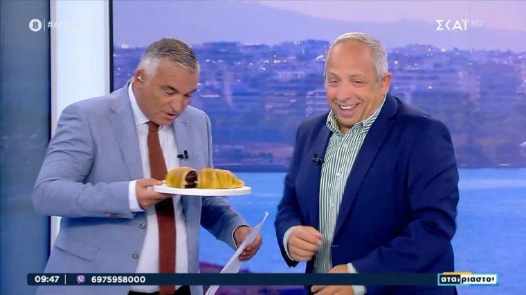 «Μια φίλη μας είχε υποσχεθεί ότι θα μας στείλει ένα μεγάλο κρουασάν. Και μας το έστειλε σήμερα! Μου το στείλανε προσωπικά. Είναι κέικ φίλε μου και είναι σαν κρουασάν ε;», είπε ο Χρήστος Κούτρας.
