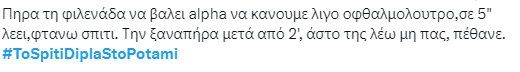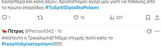 Σάρωσε στο twitter το Σπίτι δίπλα στο ποτάμι ! "Θρήνος" για Χρυσοστόμου & αποθέωση για Τρικαλιώτη
