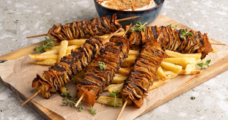 Για ορεκτικό στο μενού της πρεμιέρας φτιάχνει σουβλάκια λαχματζούν, μια ανατρεπτική συνταγή που παντρεύει το αγαπημένο street food με την ανατολίτικη κουζίνα. Ο Άκης ετοιμάζει ζουμερό κιμά με μυρωδικά, τον απλώνει πάνω σε αραβικές πίτες, κόβει με ευφάντασο τρόπο κομμάτια και δημιουργεί λαχταριστά σουβλάκια, που ψήνονται στον φούρνο και σερβίρονται με αρωματικό γιαούρτι, πατάτες τηγανητές και φρέσκια ρίγανη.