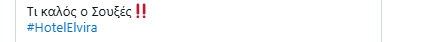 Και βέβαια οι χρήστες των social media έσπευσαν να υποδεχτούν τη σειρά με ενθουσιασμό και χαρά, με τα σχόλιά τους να είναι ιδιαίτερα κολακευτικά για το σενάριο, τις κωμικές ατάκες και τους εξεζητημένους ήρωες της σειράς Hoteλ Eλvira.