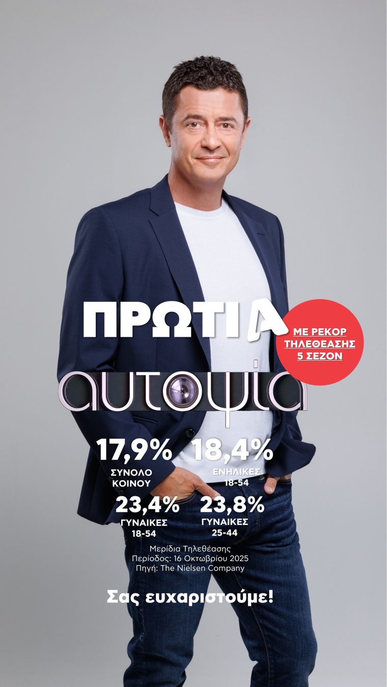 Με πρωτιές στο σύνολο του κοινού αλλά και στους ενήλικες 18-54 ετών και ποσοστά 17,9% και 18,4%, αντίστοιχα.