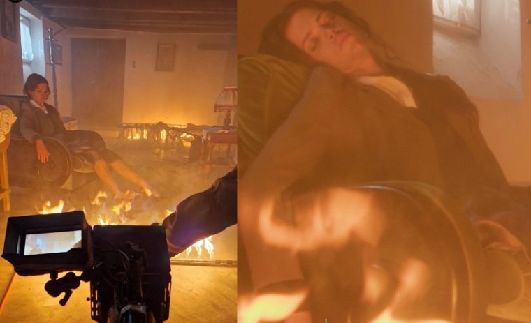 «Η σκηνή γυρίστηκε παρουσία πυροσβέστη, ο οποίος μάλιστα χρειάστηκε να μπει στο πλάνο και να σβήσει μια κουβέρτα που άρπαξε φωτιά» αποκάλυψε ο σκηνοθέτης Πιέρρος Ανδρακάκος. «Κάναμε πρόβα χωρίς φωτιά και στη συνέχεια γυρίσαμε με αληθινές φλόγες. Μετά προστέθηκαν επιπλέον vfx (visual effects) για τον καπνό και τις δυνατές φλόγες. Αυτά τα γυρίσματα απαιτούν απόλυτη ακρίβεια και για τον λόγο αυτό συνεργαζόμαστε με ειδικούς πυροτεχνουργούς».