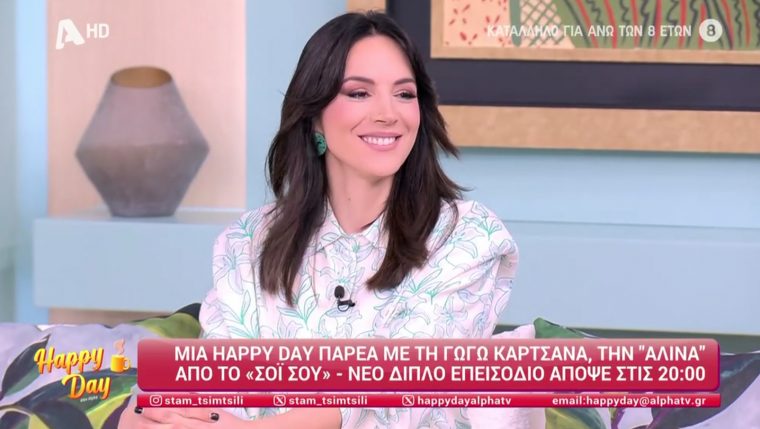 Η Γωγώ Καρτσάνα, η Αλίνα της σειράς Το Σόι σου, βρέθηκε καλεσμένη σήμερα 21/11 στην εκπομπή «Happy Day» και μίλησε για τη σειρά που αγαπούν μικροί και μεγάλοι.