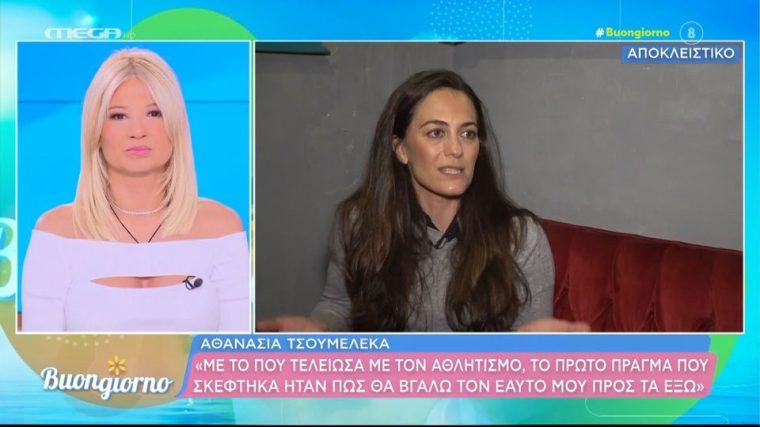 Η Αθανασία Τσουμελέκα, πρώην πρωταθλήτρια του βάδην, μίλησε στο Buongiorno για την επιτυχημένη της μετάβαση στον χώρο της υποκριτικής.