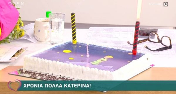 Η Κατερίνα Καινούργιου έσβησε το κεράκι και… αναφέρθηκε στην ηλικία της! «36 να ξέρετε! 40 πλην τέσσερα!» είπε η παρουσιάστρια και ξέσπασαν σε γέλια οι συνεργάτες της. Ενώ ο Γρηγόρης Γκουντάρας της είπε «Είσαι σε ώριμη ηλικία να κάνεις τα πάντα»! Και η Κατερίνα Καινούργιου είπε με χιούμορ: «Μήπως παραωριμάζω; Παιδιά σας ευχαριστώ από την καρδιά μου… Η τούρτα είναι μαγευτική…» και συνεχίστηκαν οι εκπλήξεις αφού της πρόσφεραν και μία υπέροχη ανθοδέσμη, ενώ στο πλατό υπήρχαν υπέροχα, χρωματιστά μπαλόνια!
