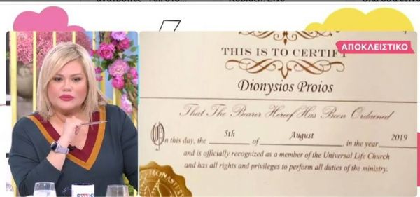 Πλέον μπορώ να παντρεύω και να βαπτίζω στην εκκλησία του σύμπαντος. Έχω κάνει ήδη έναν γάμο,, το καλοκαίρι, στην Καλαμάτα».
