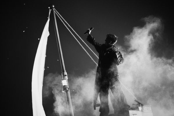 Το κοινό σηκώνεται όρθιο. Η ενέργεια ηλεκτρίζει το στάδιο. Το σύνθημα δίνεται: