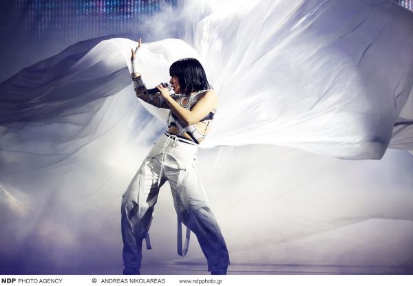 H βραδιά ξεκίνησε με την πολύ εντυπωσιακή εμφάνιση της περυσινής εκπροσώπου, της Klavdia η οποία εντυπωσίασε ερμηνεύοντας την Αστερομάτα της σε σκηνικό που θύμιζε φωτιά ενώ η ίδια φορούσε ένα υπέροχο μαύρο φόρεμα.