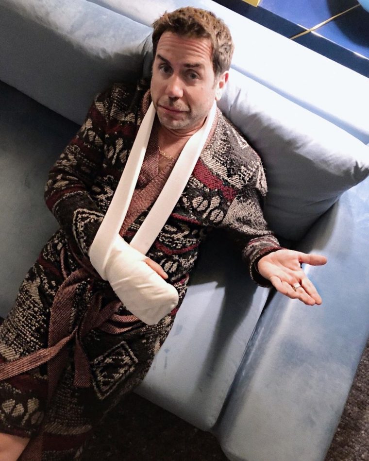 Συγκεκριμένα, ο τραγουδιστής και κριτής του show μιμήσεων του ANT1 είχε κοινοποιήσει μια φωτογραφία του στο Instagram, όπου το χέρι του βρισκόταν σε νάρθηκα, ενώ εκείνος, είχε συνοδεύσει την εν λόγω εικόνα του με τη λεζάντα: ««Όσα φέρνει η στιγμή...».