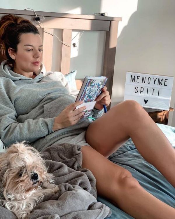 Πόζαρε από το κρεβάτι της κι έγραψε: Εγω πάντως αφού την είχα που την είχα την ατζέντα μου και δεν έχω να σημειώσω καμία επαγγελματική ή κοινωνική υποχρέωση, ξεκίνησα να γράφω ημερολόγιο♥️ Το συνιστώ ανεπιφύλακτα, μιας και ζούμε ιστορικές στιγμές...».