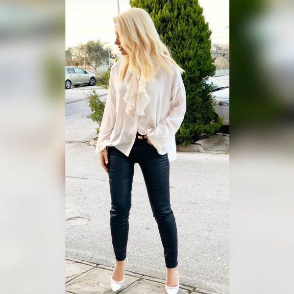 Ένα λευκό, "ρομαντικό" πουκάμισο με μαύρο παντελόνι.