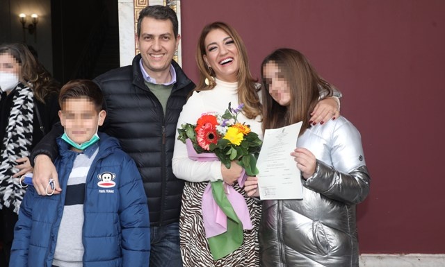 Μαζί με τον σύζυγό της και τα παιδιά τους οι δυο τους βρέθηκαν τη μέρα της ορκωμοσίας στο Πανεπιστήμιο Αθηνών για να παραλάβει η παρουσιάστρια το πτυχίο της από το τμήμα πολιτικών επιστημών, δείχνοντας πραγματικά ευτυχισμένη.